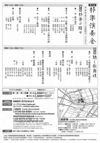 三曲「鹿の遠音」 義太夫「鬼一法眼三略巻 五条橋の段」 新内「不断桜下総土産 子別れの段」 長唄「みやこ風流」 筑前琵琶「壇の浦」 一中節「石橋」